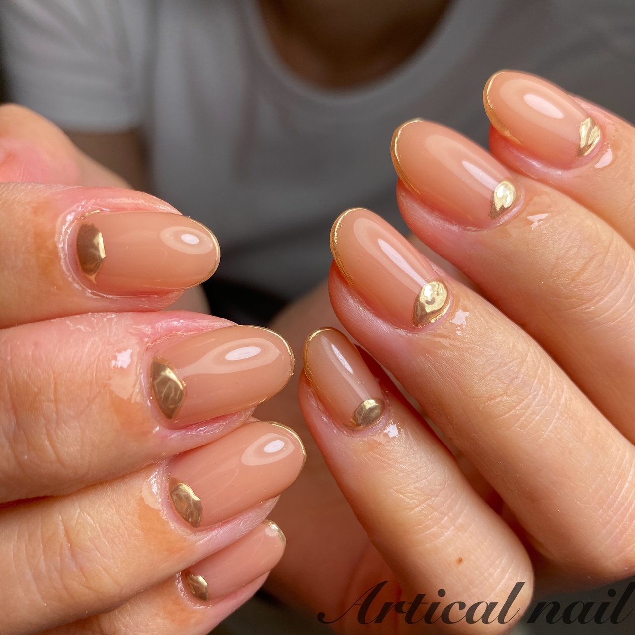 大人のシンプルネイルは ヌーディーベージュ ゴールド で作る Itnail